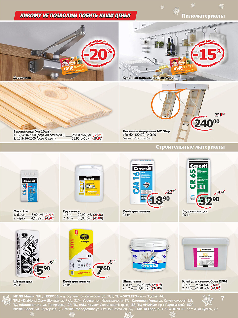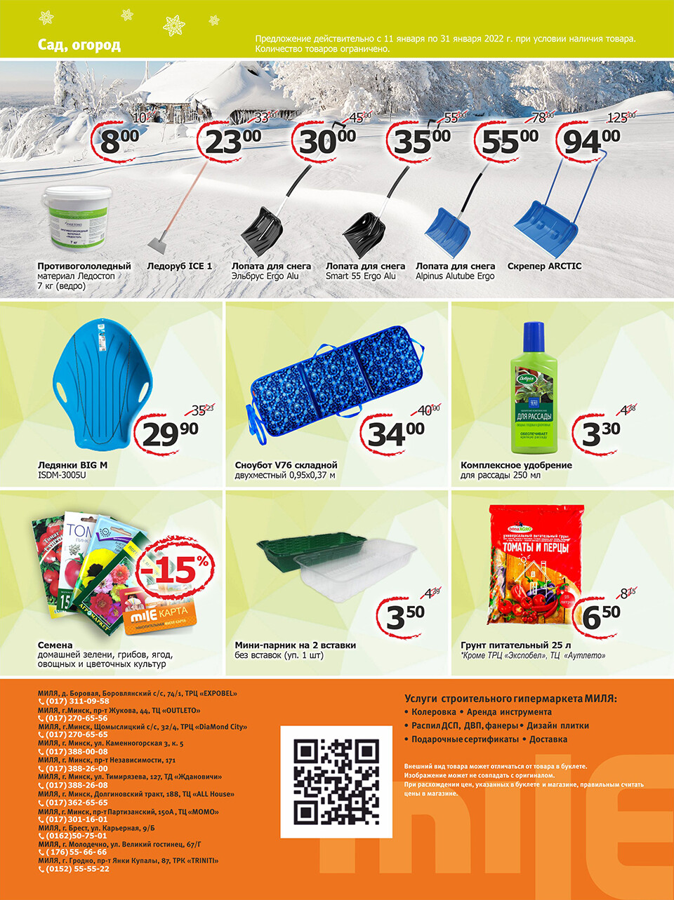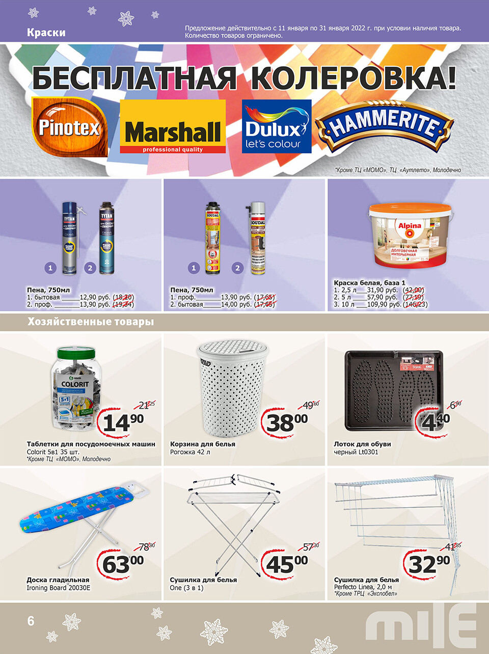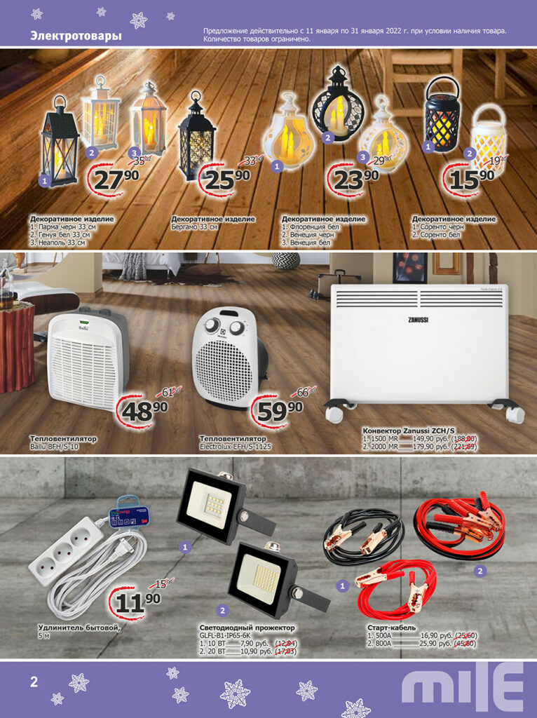 До конца января в розничной сети магазинов “Mile” (“Миля”) будет действовать обновленный ассортимент акционных предложений – покупайте по выгодным ценам сантехнику, электротовары, а также все необходимое для дома и дачи