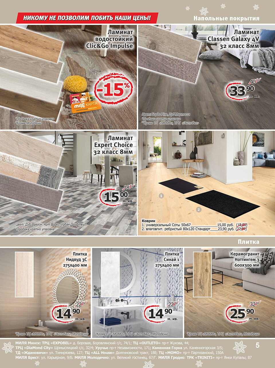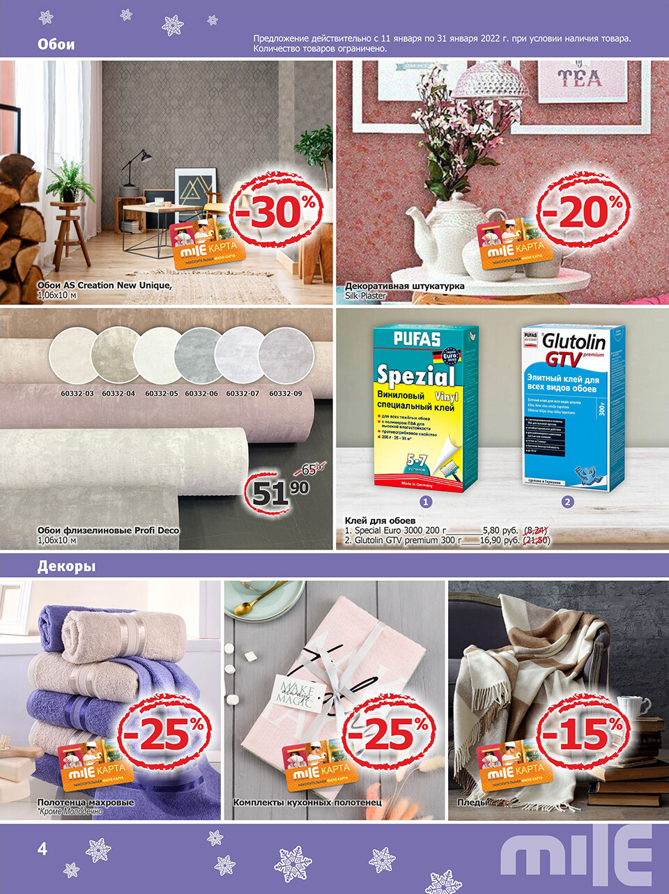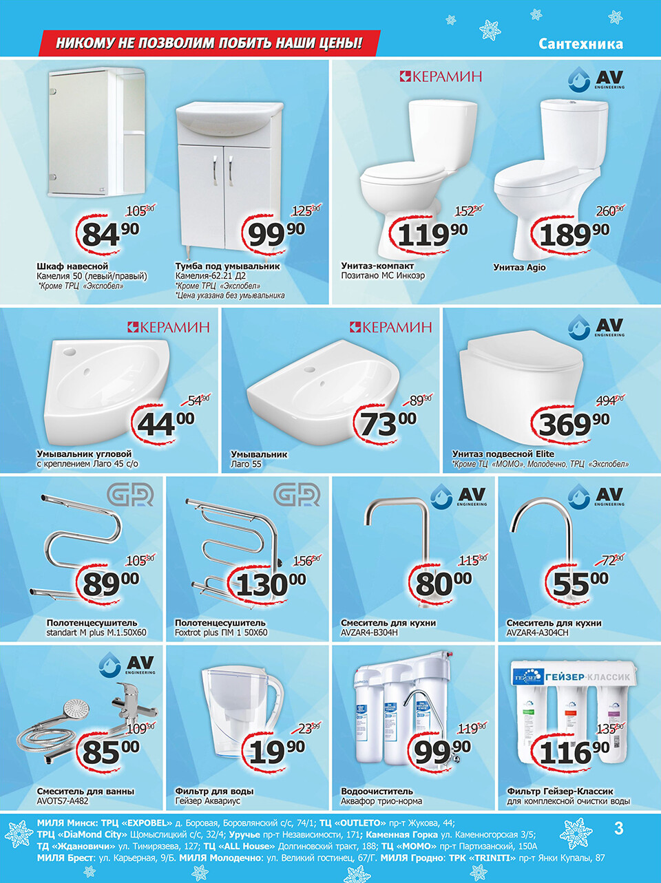 До конца января в розничной сети магазинов “Mile” (“Миля”) будет действовать обновленный ассортимент акционных предложений – покупайте по выгодным ценам сантехнику, электротовары, а также все необходимое для дома и дачи